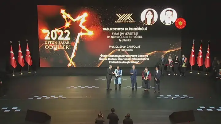 Güzel sanatlar ve mimarlık kategorisi, sosyal ve beşeri bilimleri kategorisi, sağlık ve spor bilimleri kategorisi ile fen ve mühendislik bilimleri kategorilerinde yılın en iyi doktora tezleri ödüllendirildi. Törende Fırat Üniversitesi Tıp Fakültesi Öğretim Üyesi Prof. Dr. Sinan Canpolat'ın danışmanlığını yaptığı Dr. Nazife Ülker Ertuğrul'un hazırladığı 'İrisin Hormonunun Puberteye Geçiş ve Üreme Sistemi Üzerindeki Nöroendokrin Etkilerinin Araştırılması' konulu tezi sağlık ve spor bilimleri kategorisinde yılın doktora tezi ödülüne layık görüldü.
