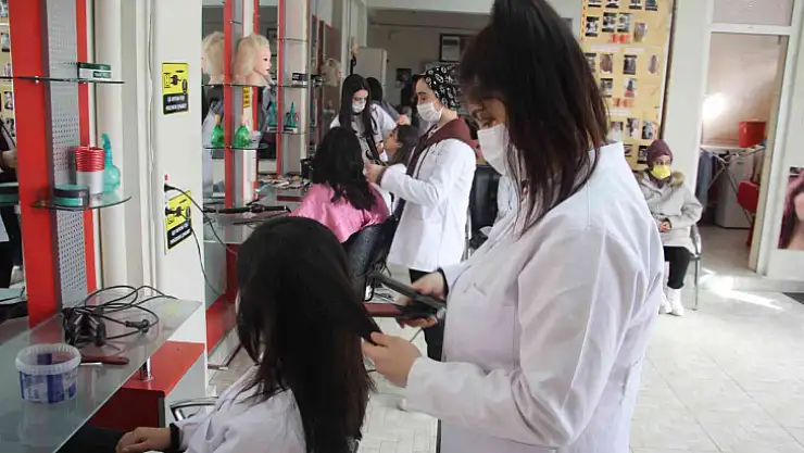 Öğrencilerin hem öğrenip hem de ücret kazandıklarını aktaran güzellik ve saç bakım hizmetleri öğretmeni Nevin Kara, "Okulumuzda cilt ve saç bakımı dalı bulunmaktadır. Özellikle 11. sınıfta teorik artı uygulama derslerimiz yoğunlaşmaktadır. Son sınıftaki öğrencilerimiz staja yöneldiği için işletmelere hazır vaziyete getiriliyor. Güzellik ve kuaför salonunda yapılan bütün işlemler okulumuzda da mevcuttur. Bu yüzden daha çok müşteri odaklı çalışmaktayız. Fiyat listelerimiz var. Dışarıdan ve okulumuzun öğretmenleri için iki farklı fiyat uygulanmaktadır. Öğrenciler daha çok uygulama odaklı çalışıyor. Ücretin yarısını döner sermayeye yarısını da öğrenciye kazandırmaktayız. Öğrenci bu şekilde hem eğitim görürken hem de ücret almış oluyor “diye konuştu.