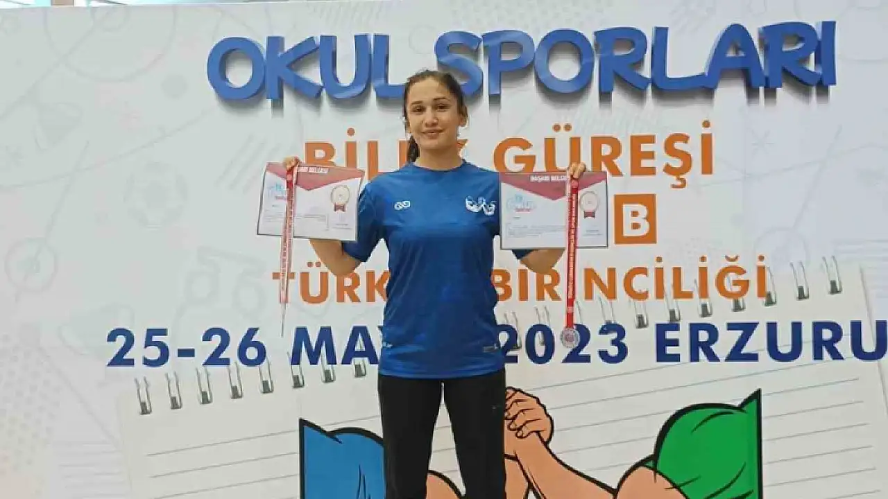 Erzurum'da yapılan Bilek Güreşi Gençler Türkiye Şampiyonasında mücadele eden Elazığlı sporcu Evindar Demirbağ, sağ ve sol kolda Türkiye derecesi elde etti.