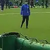 Kavga anı tribünde yer alan bir taraftarın cep telefonu kamerasıyla kaydedildi.