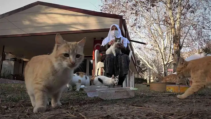 Elazığ'ın Keban ilçesinde yaşayan 76 yaşındaki Zahide nine, sokakta yaşayan 30'a yakın kediye evinin bahçesinde çocuk gibi bakıyor.