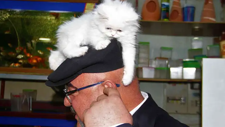 Elazığ’da bir pet shop’ta bulunan yavru bir kedi dükkanın ve müşterilerin maskotu oldu. Muhabbet kuşuna yem almak için iş yerine gelen Cemil Gökalp, yavru kediyi görünce kucağına alarak sevmeye başladı. Bunun üzerine sevimli kedi vatandaşın Elazığ yöresine ait 8 köşeli şapkası ile oynayarak başına çıktı. Gökalp ile yavru kedinin sevimli halleri gülümsetmişti. Gökalp artık kediyi görmek için her gün pet shop’a gidiyor.